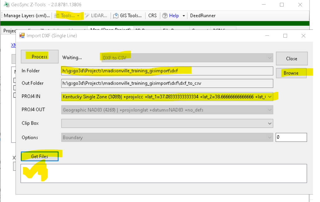 - Browse to DXF folder